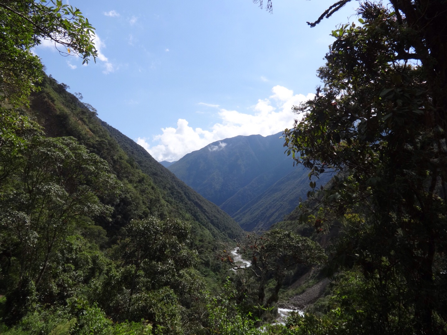 We still had 6 hours of walking left that day, and began our descent into the cloud forests and jungle below. It was incredible how the stark and snowy mountain landscapes changed so quickly into lush, tropical jungle. From a few prickly shrubs at the summit, we were soon (a few hours on) walking through thick vegetation of passion fruits, banana trees and orchids.
