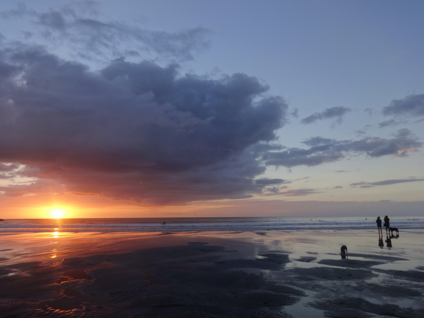 Last night I witnessed the most beautiful sunset I have ever seen. I stood in the shallows, looking out to the golden, blue and pinky sky; to the surfers just bobbing on their boards, facing the same way as I, disappearing behind the huge 2-3m waves which swelled between them and me; these waves which grew and crashed and rushed towards me, diminishing with every metre they travelled until they lapped gently at my calves and the sun shone golden on the temporary frothy calm behind each one.